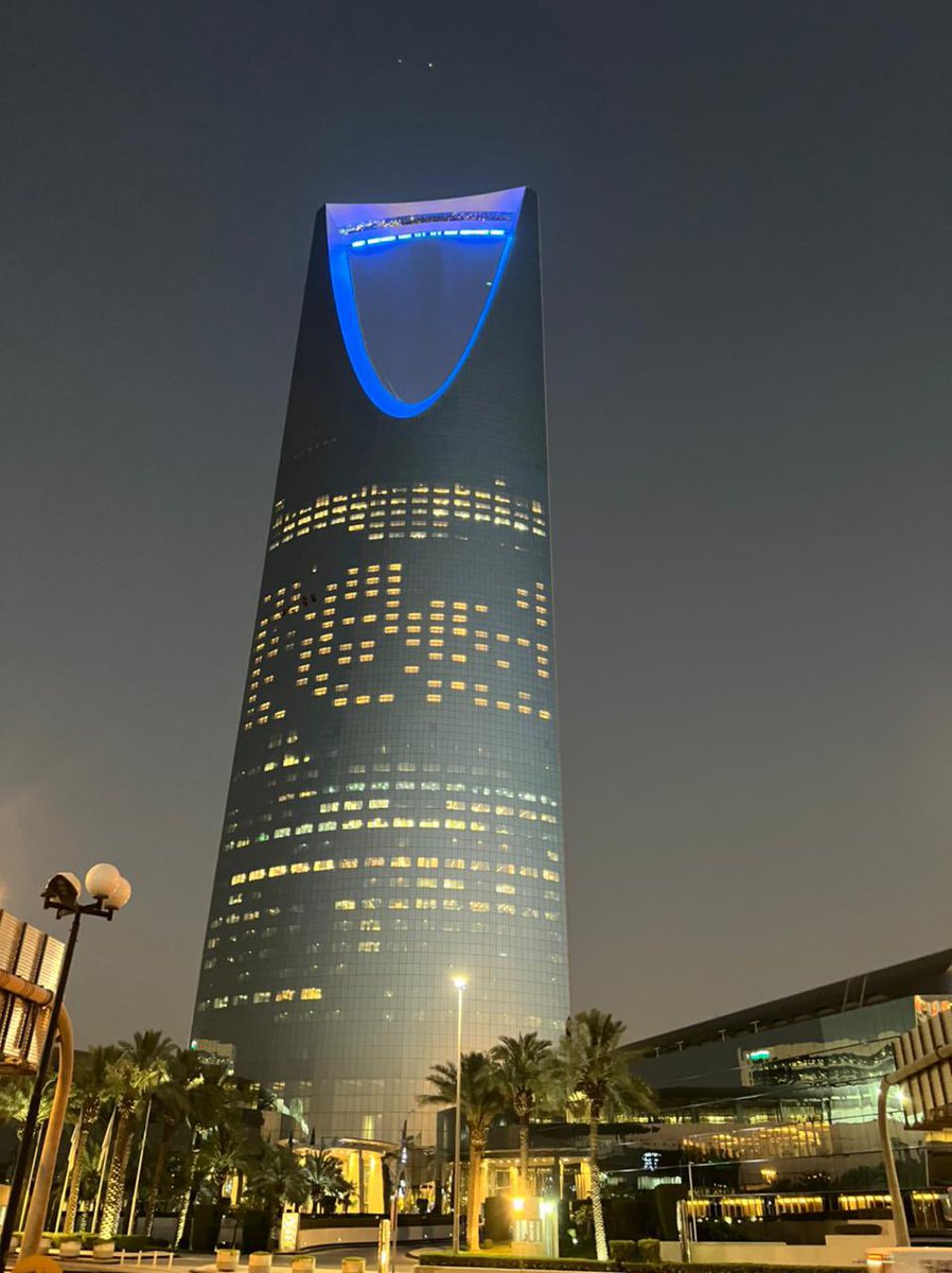 In Saudi Arabia, expressing solidarity with those forced to flee – billboards in Riyadh and Jeddah, and the Kingdom Tower lit up in UN blue.