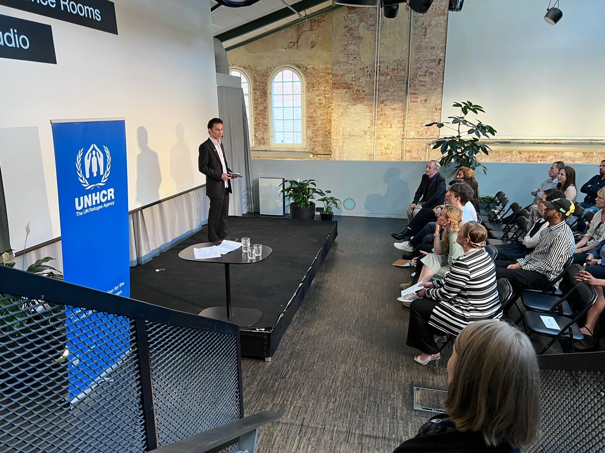 UNHCR Nordic and Baltic colleagues organized a pass the mic night so refugees could share their stories.